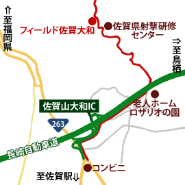 国道263号を佐賀駅方面へ進み、1つ目の信号(佐賀大和IC南)を左折。