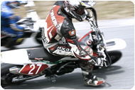 | 2位の#42坂牧。坂牧選手は関東地区でモタードスクールなどを開催し、モタード文化の普及に努めている。 |