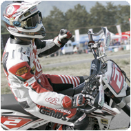 | 2位の#4増田智義選手+YZ450F2010。最速タイムを出すも#2松本を抜くことができなかった。(ジョーズレーシングヤマハ+レアルエキップ) |